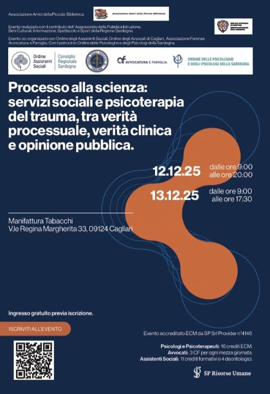 A Cagliari negli spazi dell’Ex Manifattura Tabacchi , il 12 e 13 dicembre 2025 si terrà l'evento "Processo alla scienza: servizi sociali e psicoterapia del trauma tra verità processuale, verità clinica e opinione pubblica".