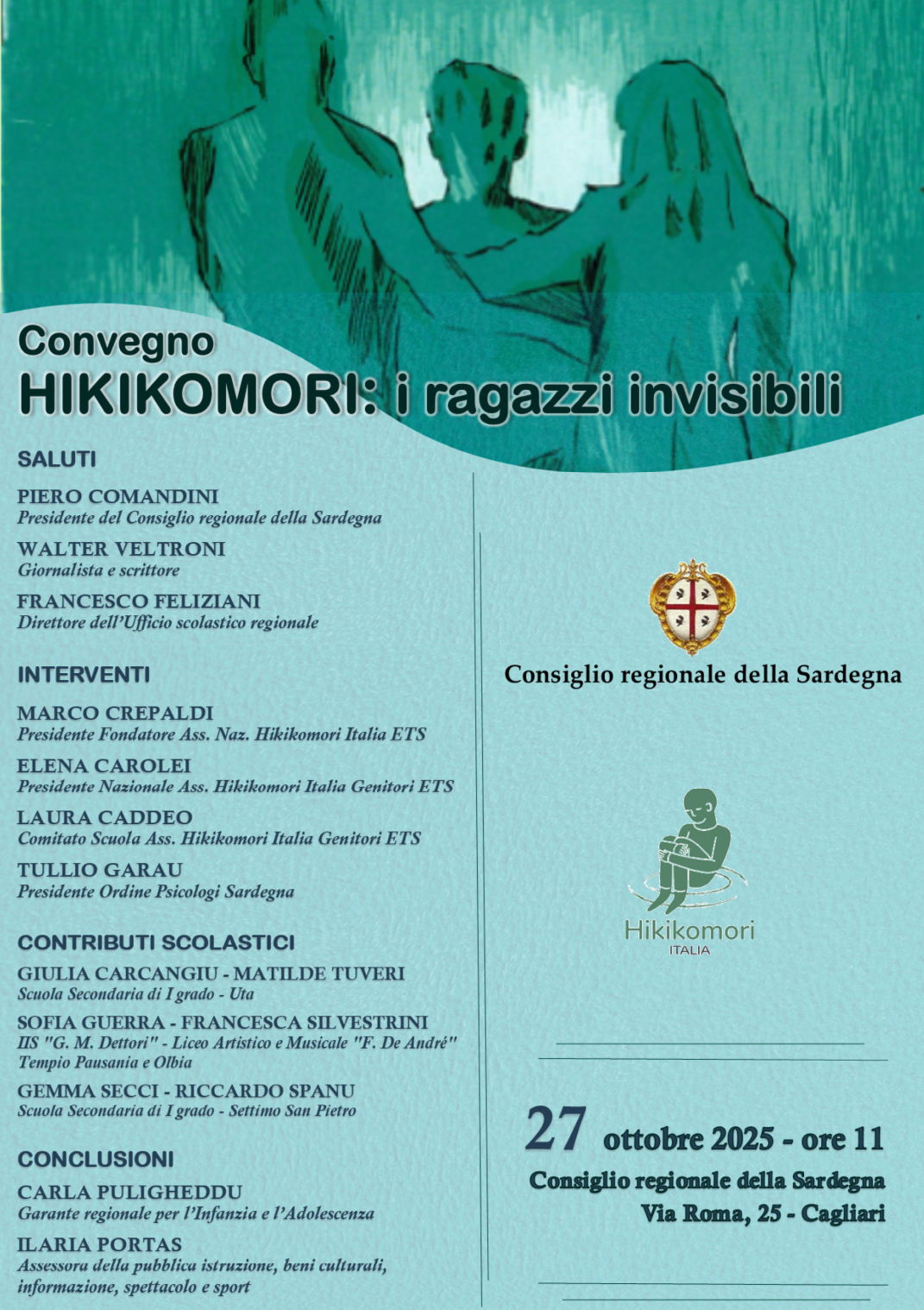 Il prossimo 27 ottobre si svolgerà presso il Consiglio regionale della Sardegna, nell’Aula consiliare, alle ore 11, il convegno “Hikikomori: i ragazzi invisibili”.