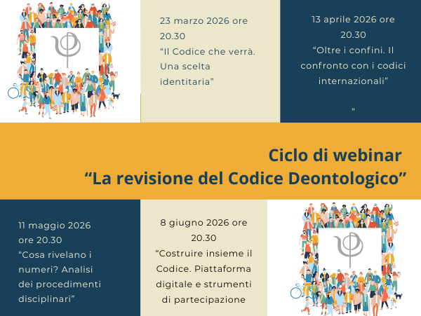 In questo quadro si inserisce il ciclo di webinar “La revisione del Codice Deontologico”, promosso dal CNOP come spazio di informazione, riflessione critica e partecipazione consapevole, e che si svolgerà a partire dal prossimo 23 marzo sui canali social del Consiglio Nazionale.